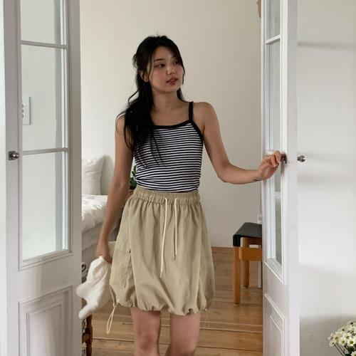 [다잇템]여자 건빵 쁘띠 허리 드로우코드 스커트