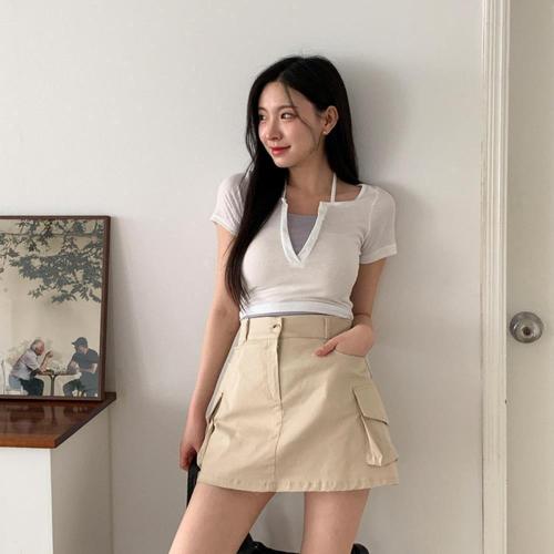 [다잇템]여자 쁘띠 건빵 컷아웃 주머니 옆면 스커트