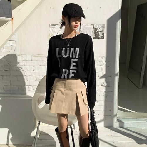 [하프클럽/]여자 면원단 백밴딩 건빵 아코디언 숏스커트