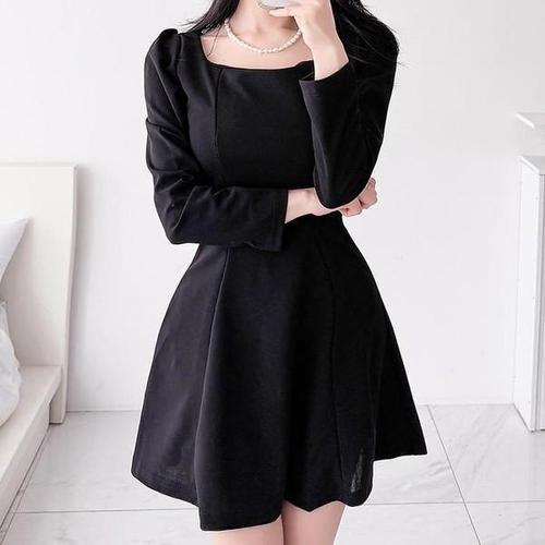 [다잇템_패션]여자 스퀘어넥 슬림 검정 후레아 미니원피스