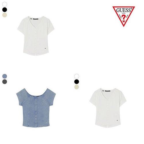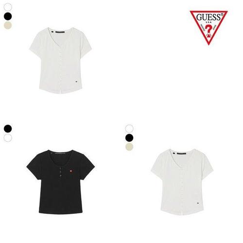 [게스]여성 브이넥 콩단추 반팔 티셔츠 OQ2K5451