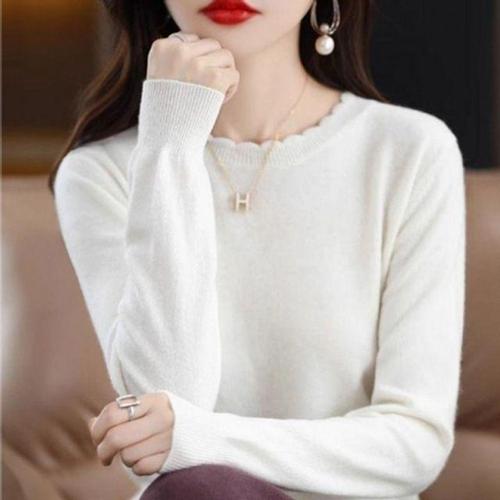 겨울 니트 긴팔 스웨터 티 여자 라운드 간절기 셔츠 물결 WFKZLXF