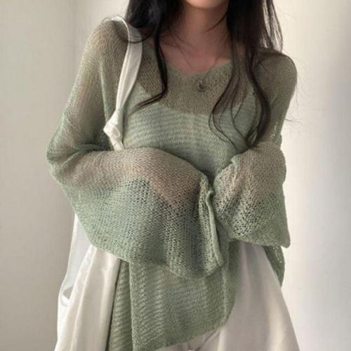 겨울 니트 루즈핏 브이 시스루 그물 셔츠 스웨터 여자 티 긴팔 WFKZLXH
