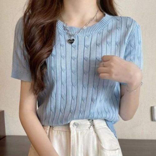 겨울 니트 가벼운 짜임 여자 꽈배기 티 여름 반팔 스웨터 셔츠 WFKZLXV