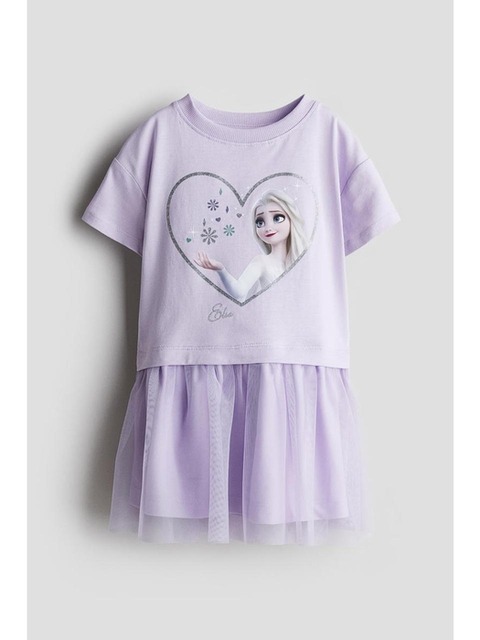 [에이치엔엠] 프린트 디테일 튤 드레스 라일락/겨울왕국 1281829002