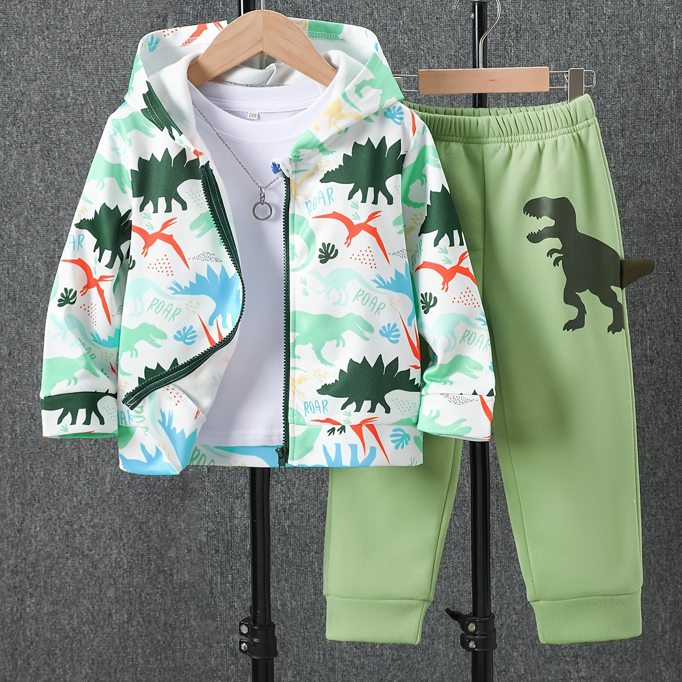 TEMU 2개 세트 남아용 공룡 코스튬 - 후드 재킷 & 3D 풀집 팬츠, 부드러운 겨울 의상, 세탁기 사용 가능 (그린/블루/핑크/블랙) - 공룡 테마 파티용 포근한 가을 겨울 옷, 야외 활동에 완벽