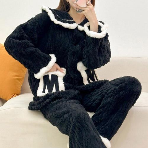 2개 세트 여성용 잠옷 가을 겨울 학생용 홈웨어 패딩 및 두꺼운 따뜻한 공주 옷 여성 의류