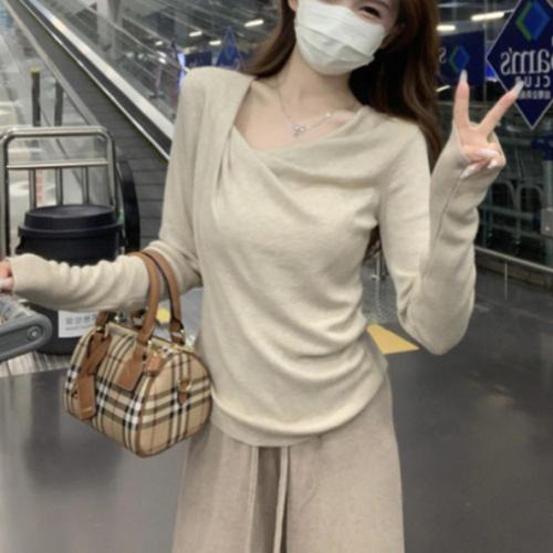 여성 겨울 데이트 드레이프넥 셔링 꼬임 사선 긴팔 니트 (WFKQ1LM)
