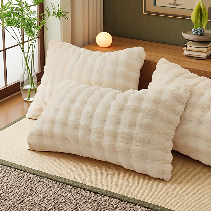 TEMU 2개 럭셔리 푹신한 인조 토끼털 베개 커버 - 지퍼 잠금 방식의 플러시 같은 부드러운 커버, 세탁기 사용 가능, 거실용 현대적인 스타일