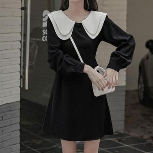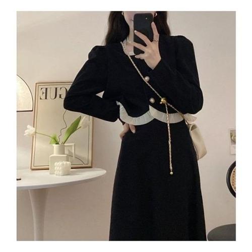 나나 라운드 미시 롱원피스 노카라 하객룩 겨울 a라인 배색 긴팔 기모 결혼식 봄 스판