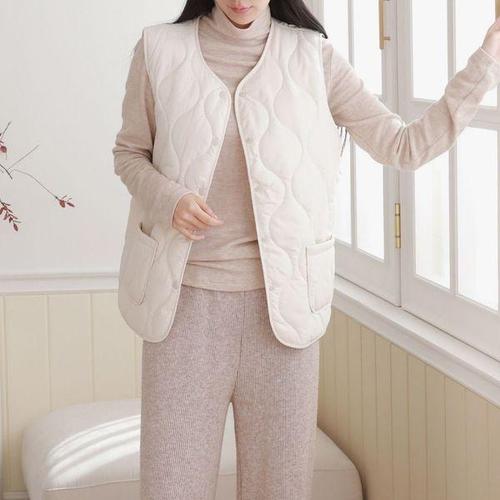 여성 옆포켓 경량 패딩 조끼 1P 겨울 슬림 베스트 얇은 기모 이너 여자 사무실