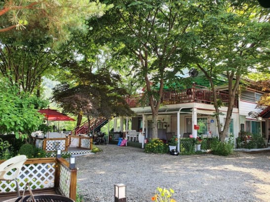 [경기/가평] 가평 하늘숲 스파 펜션 (계곡인접/공용수영장(실외)/스파/주차장/개별바베큐/가족/커플/복층/테라스)