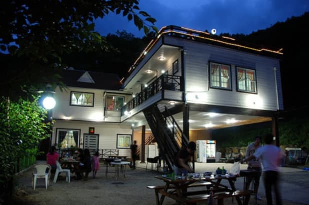 [경기/가평] 가평 무지개 펜션 (워터슬라이드/족구장/파티/이벤트가능/계곡인접/수상레저/공용수영장(실외)/개별바베큐/주차장/복층/가족/MT/워크샵/단체/커플)
