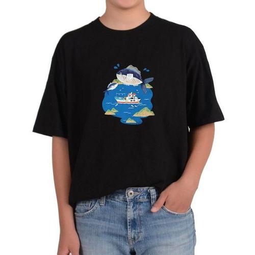 [에이치플러스몰]반팔라운드 낚시 섬마을어부 바위섬 고기잡이 만선의 꿈 전사이즈
