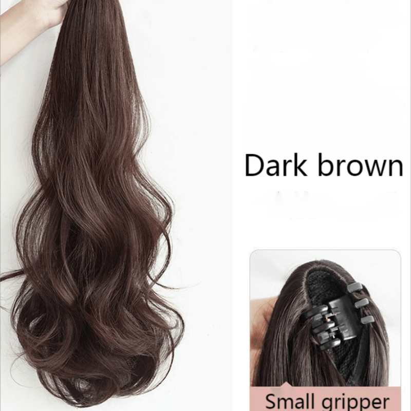 TEMU 여성용 우아한 컬리 클로 클립 포니테일 익스텐션 - 볼륨감 있는 웨이브가 있는 자연스러운 블랙 합성 머리, 어떤 헤어스타일에도 높이와 스타일을 더할 수 있는 완벽한 제품, 포니테일 헤어 익스텐션