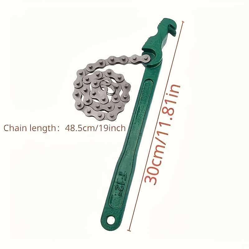 TEMU 1pc 중량 대형 조절 가능한 체인 렌치 도구 - 인간 중심의 스틸 바디, 오일 필터 및 파이프 피팅 제거를 위한 녹색 고무화된 그립, 자동차 유지보수, 자동차 수리, 체인 렌치, 자동차 수리, 내구성 있는 구조, 강력한 디자인, 신뢰할 수 있는 공예, DIY 열혈 팬