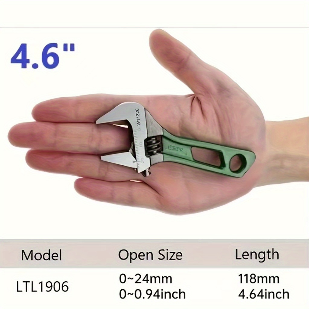 TEMU 1개 4.6인치 조절 가능한 렌치 - 넓은 턱, 짧은 손잡이 미니 렌치 (레이저 각인 마킹 및 고무 그립) - 배관 및 욕실 유지보수용 내구성 강한 금속 구조