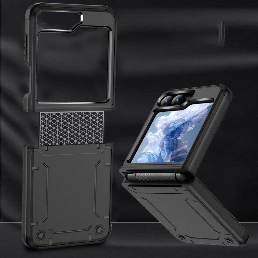 TEMU 갤럭시 Z 플립 7 호환 폰 케이스: 카드 홀더, 자동 힌지 보호, 내장 HD 스크린 보호기, 풀 바디 충격 방지 케이스