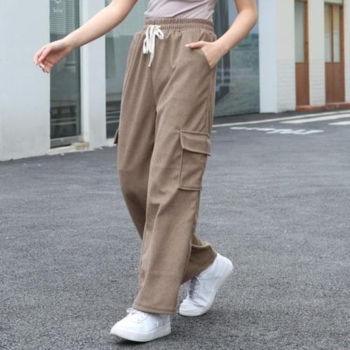 여성 겨울 골덴 밴딩 포켓 스트링 와이드 팬츠