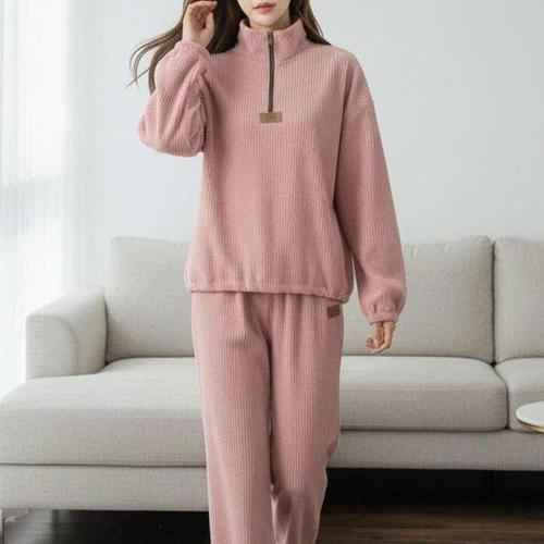 [에이치플러스몰]와이드 여성 골덴 바지 반집업 세트 여자 기모 츄리닝
