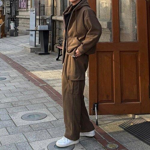 [피팅남]남자 우덴 기모 후드집업 카고 와이드 골덴 셋업 세트
