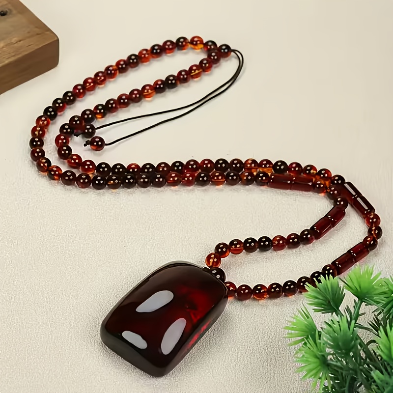 TEMU 스타일 천연 호박 목걸이 - 2월 탄생석 선물, 일상 착용, 스승의 날, 졸업식, 생일 및 특별한 날을 위한 우아한 액세서리