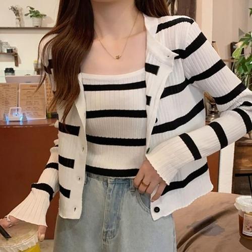[엄지척]간가라 골지 가디건 줄무늬 끈 나시 신축성 가디건_19792309_667501