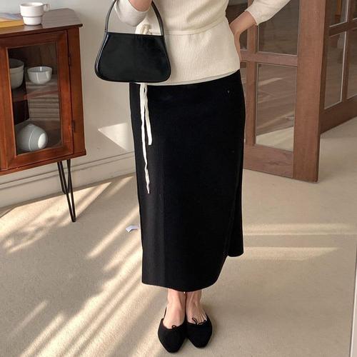 데일리앤 시그 H라인 골지 니트 롱 스커트