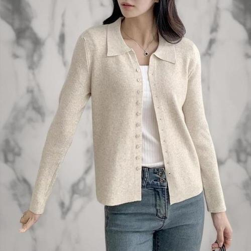 [다잇템][다잇템] 여성 카라 롱슬리브 단추 베이직 잔골지 스웨터 FW 가디건_23740117_588872