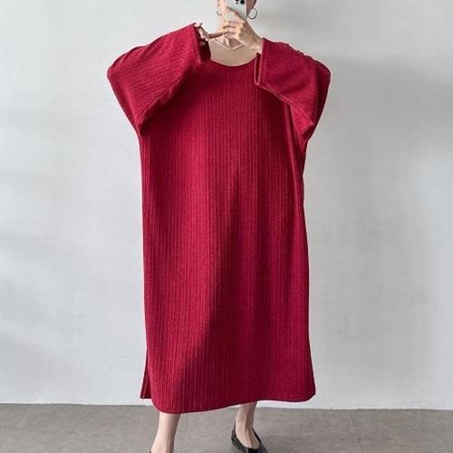 [다잇템][다잇템] 여자 빨간색 골지 밑트임 큰사이즈 볼드숄더 롱원피스_23387765_588872