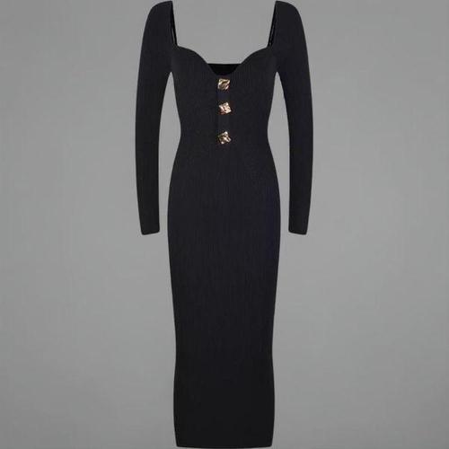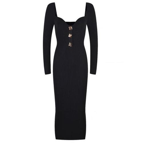 [신상오픈런]여성용 슬림핏 골지 니트 하트넥 롱드레스 골드버튼 원피스