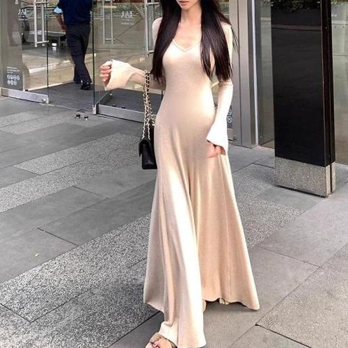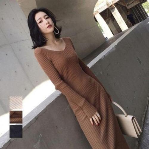 [신상오픈런]여성용 슬림핏 골지 롱 니트 A라인 원피스