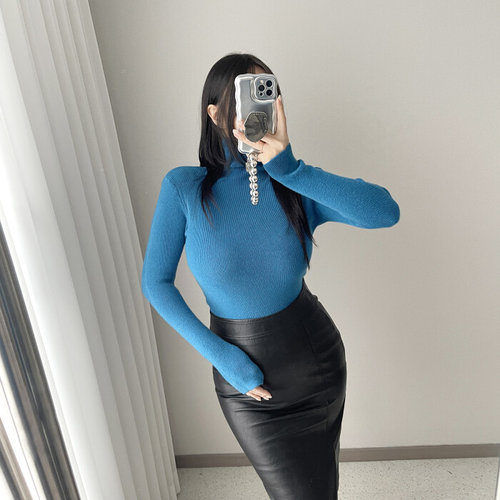 글램핏 / 파스텔 컬러 슬림핏 골지 목폴라 이너 니트 티셔츠 10컬러