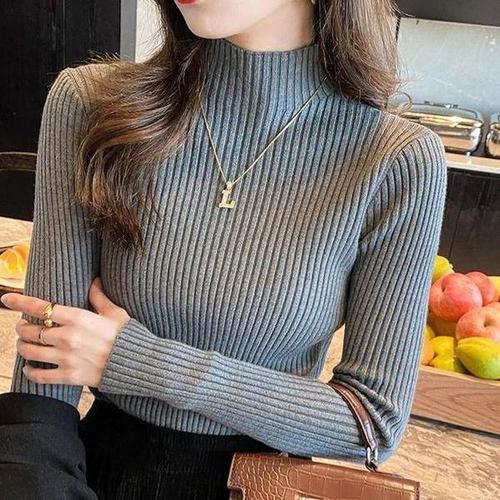 [오늘출발] 엘텍몰 여성 목폴라티 가을 겨울 도톰한 골지 터틀넥 여성 니트 티셔츠 물결폴라티