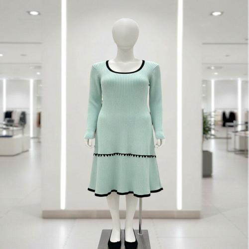 [비바앤코코넛]페미닌 골지 배색 롱 원피스