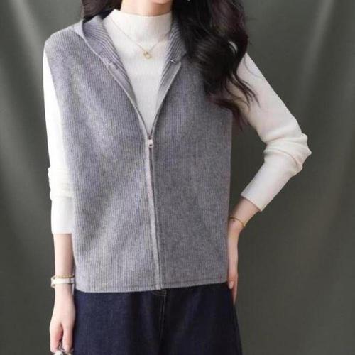 [신상오픈런]여성 레귤러핏 골지 니트 집업 조끼 심플 무지 디자인