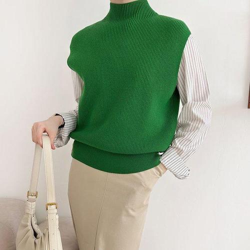 [옷자락]여성 골지 터틀넥 니트조끼 박시핏 겨울가을용