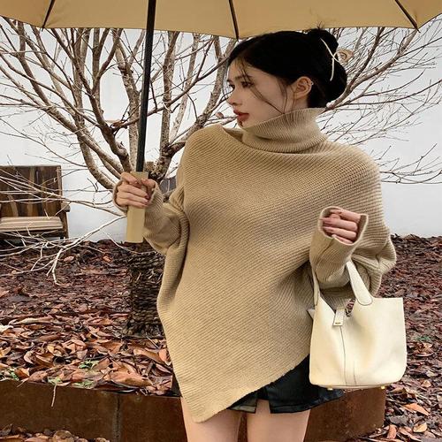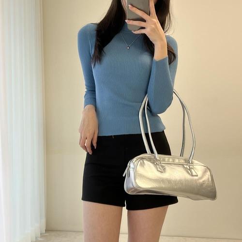 [옷자락]여자 하이넥 반목 골지 슬림핏 긴팔 데일리룩 니트