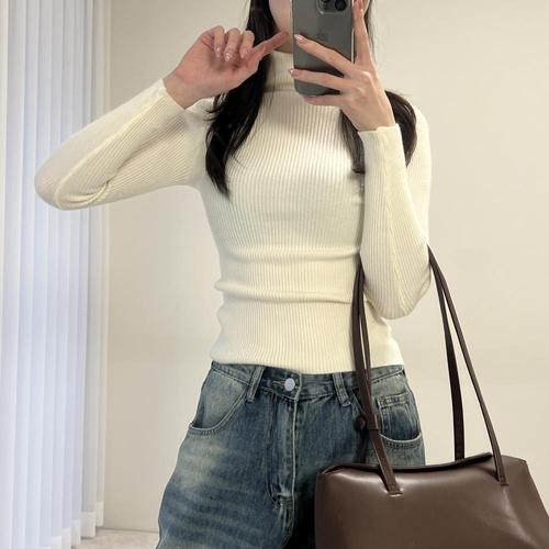 [옷자락] 여자 터틀넥 골지 겨울이너 롱슬리브 슬림핏 니트