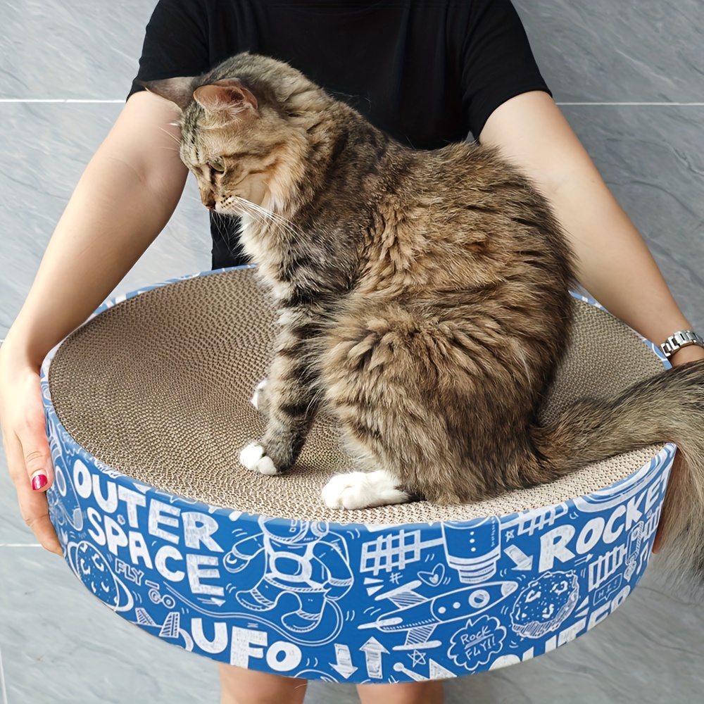 TEMU 초대형 골판지 고양이 스크래처 라운지 - 블루 코스믹 패턴, 가구 및 침구 보호, 66lbs 이하의 고양이에게 이상적