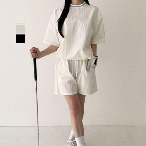 다운블로우 여성 여름 골프웨어 반팔 티셔츠 조거팬츠 세트_02