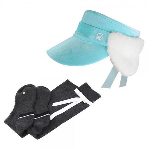 [혼마골프]혼마 여성용 겨울 귀마개 썬캡 골프 모자 니삭스 장목 양말 세트