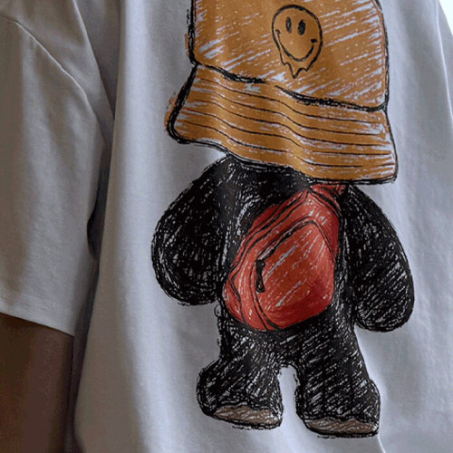 넛지어패럴 / 캐주얼 곰돌이 프린팅 오버핏 반팔티