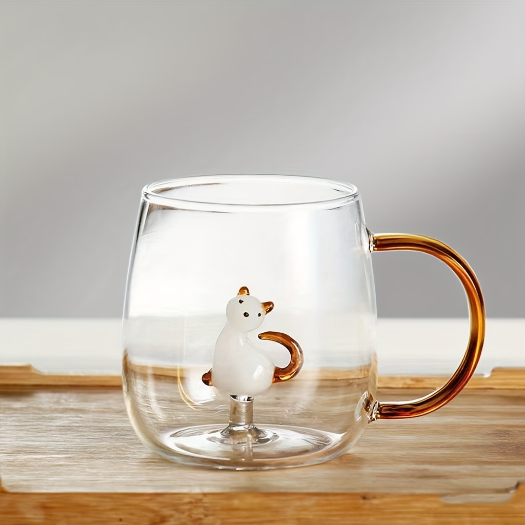 TEMU 새로운 3D 동물 모양 유리컵, 손잡이, 가정용 고경도 붕규산 유리, 선물로 완벽. 귀여운 고양이와 강아지 디자인 포함, 주스 및 차가운 음료에 적합, 봄 축제, 크리스마스와 같은 행사에 적합