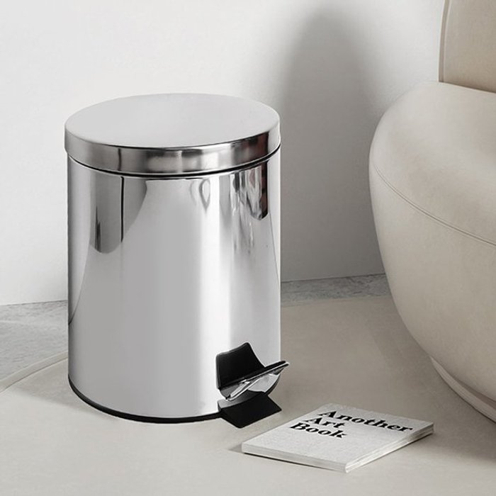 엄지척 공간활용 원룸 화장실 틈새 스텐 원형 페달 휴지통 3L