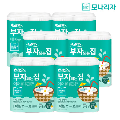 [리빙특가]모나리자 부자되는집 에어볼 키친타월 130매x4롤x6팩, 총 24롤