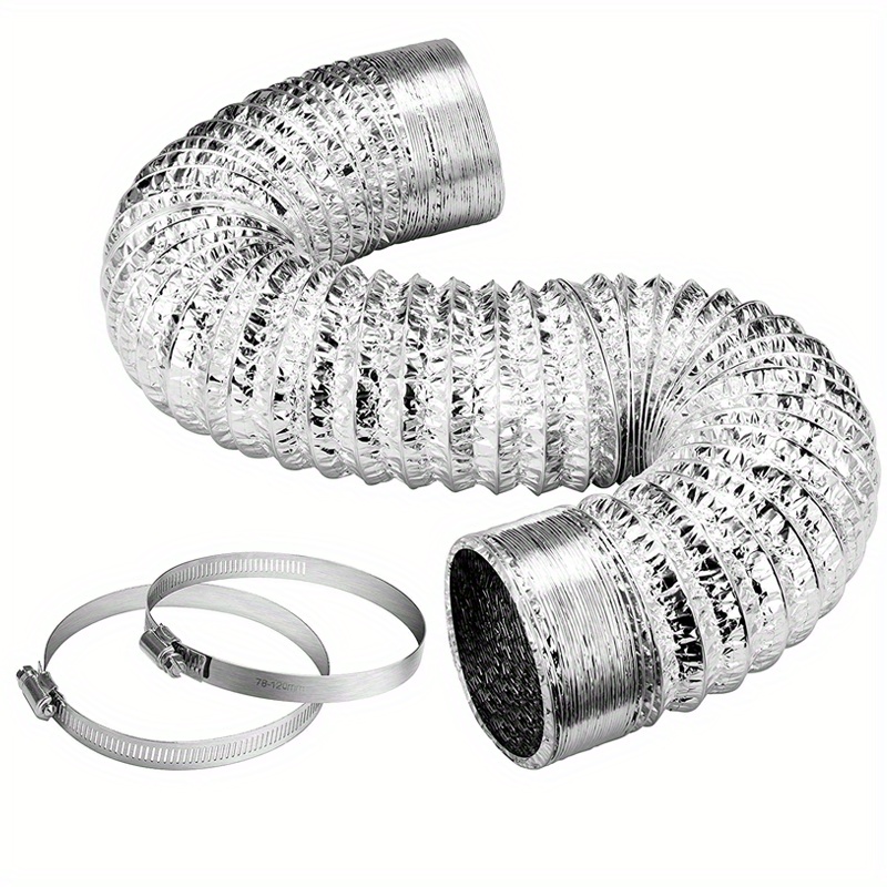 TEMU 4/6인치 25피트 비절연 플렉스 에어 알루미늄 덕팅, HVAC 환기용, 6인치 스테인리스 스틸 클램프 2개 포함