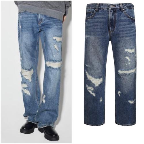 [신상오픈런]여자 컷팅 구제포켓 세미와이드 논스판 키큰녀 청바지