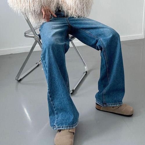 [신상오픈런]여자 컷팅 구제포켓 세미와이드 논스판 키큰녀 청바지