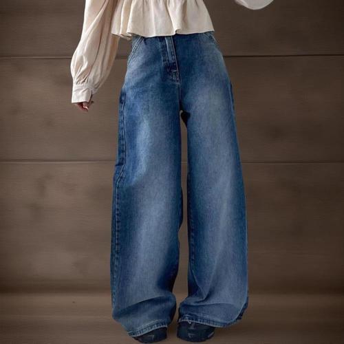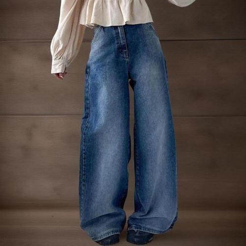 [신상오픈런]여자 키큰녀 맥시 와이드핏 컷팅 구제 워싱 청바지